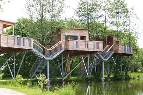 Ein wahr gewordener Kindheitstraum: in den über einen Steg verbundenen Hotels findest du dich in luftiger Höhe inmitten der Natur wieder. Die Hotels verfügen jeweils über eine 22 Quadratmeter große Wohnfläche mitsamt Bett, Bad und Sitzecke. Vom Balkon aus hast du eine wunderschöne Aussicht auf den nahegelegenen See.