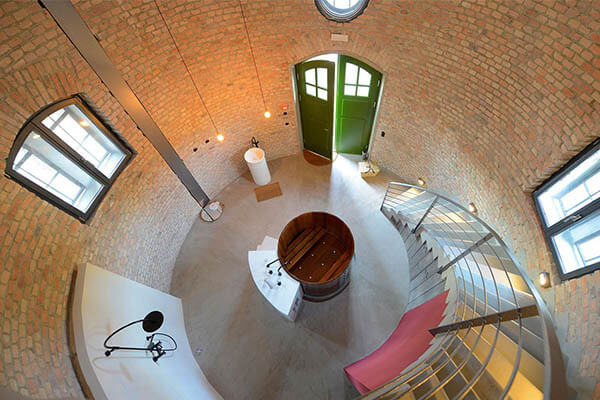 Über 100 Jahre alter Wasserturm: am Ufer des Scharmützelsees findest du hier einen vollständig sanierten Wasserturm, der unter anderem einen Whirlpool und eine beeindruckende Aussicht auf die brandenburgischen Wälder und den Kurpark bietet. Frühstück wird dir morgens auf die erste Treppenstufe gestellt.